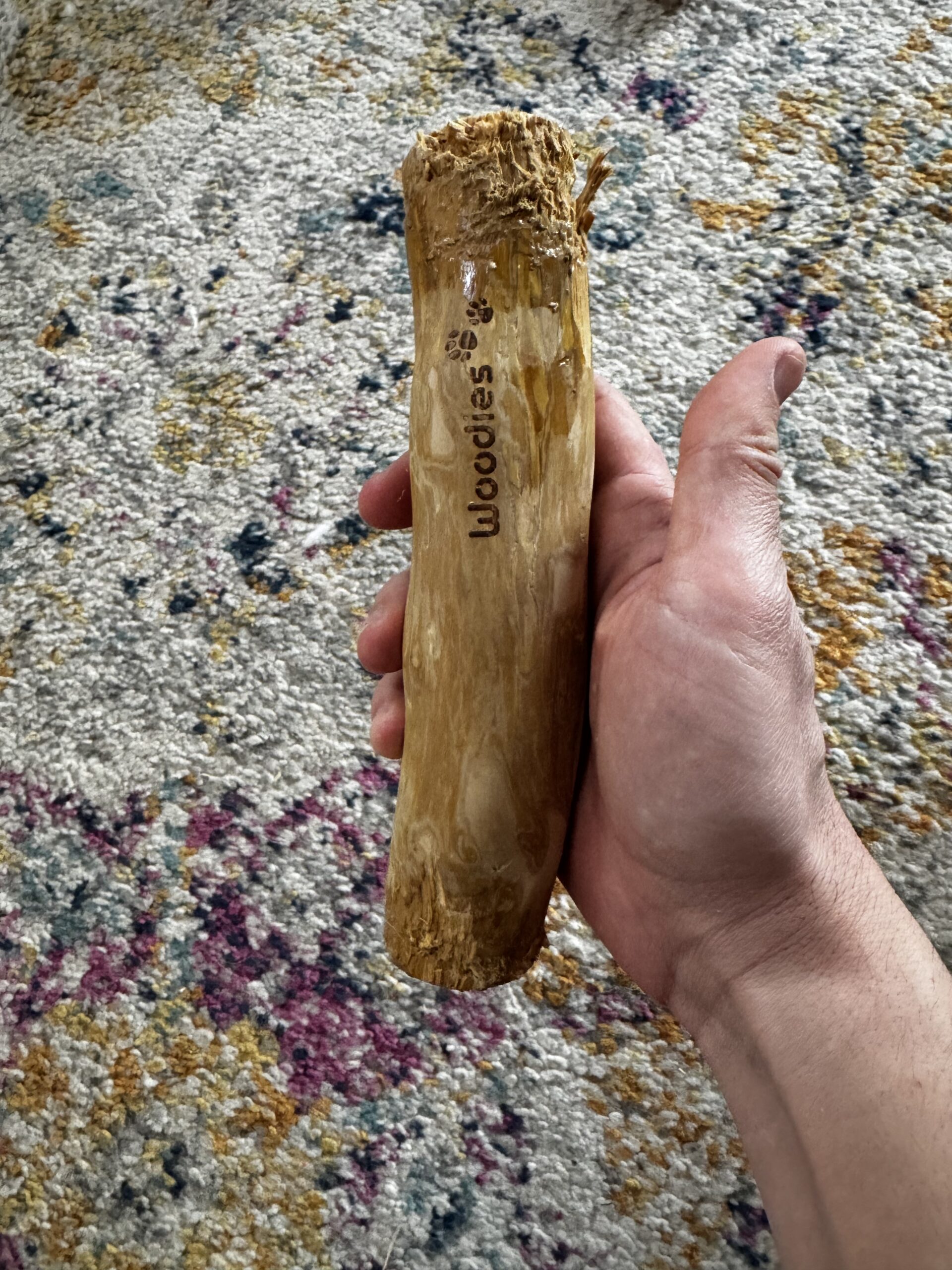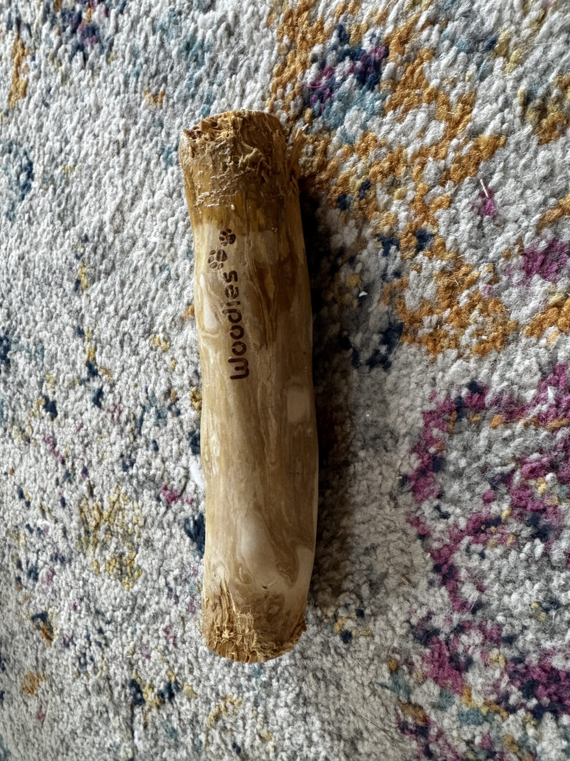 Let’s be real — as your dog chews, small fibers, flakes, and wood bits will come off. You’ll find little wood shavings around wherever your dog was chewing. It’s not greasy or staining like bully stick residue, but you will need to vacuum. Many owners designate coffee wood chews as “outdoor only” chews for this reason.